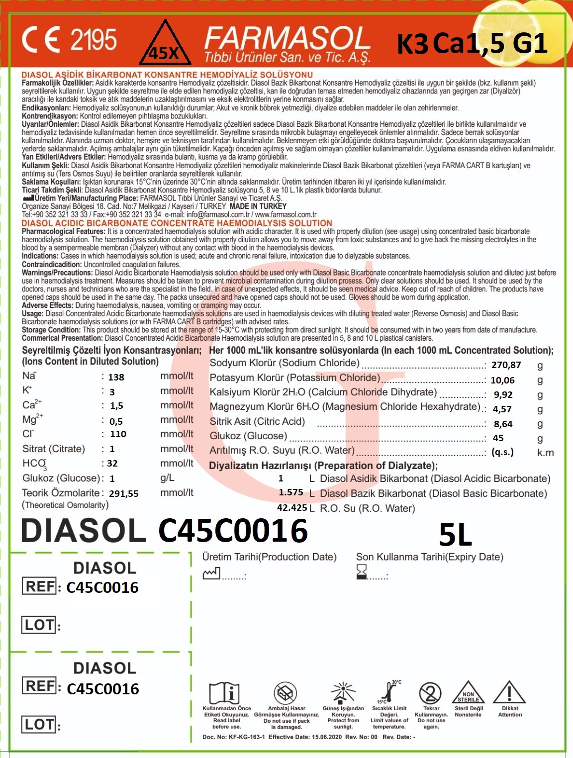 | C45C0016 | 5 liter | 36 stk | Kalium 3 | Ca 1,5 | Citrat | Åpne |