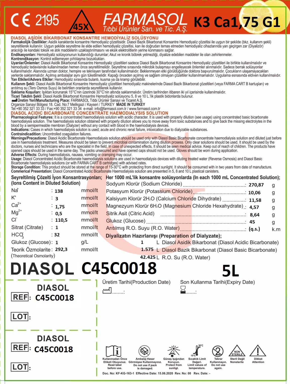 | C45C0016 | 5 liter | 108 stk | Kalium 3 | Ca 1,5 | Citrat | Åpne |