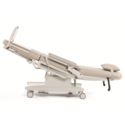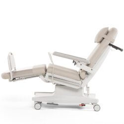 Denne modellen leveres med tre motorer for elektrisk justering av stolens viktigste funksjoner, og er utviklet for å gi optimal støtte til både pasient og helsepersonell.